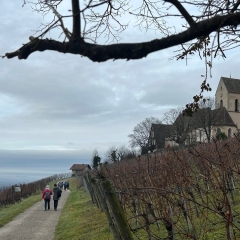 Das ART-Dorf Ödlingen am Berghang des Ödlinger Berges war der Einstieg in die Wanderstrecke. Dann ging es bergan zum Tüllinger Berg. Nach dem das Nieselgrau sich verzogen hatte, öffneten sich die Blicke auf die Burg Rötteln, auf Lörrach und die Ausläufer des Schwarzwaldes, bis hinunter die das Dreiländereck Schweiz-Frankreich-Deutschland. Ein Farbtupfer der heutigen Tour war der Rundgang im Schauraum des Vitra Design Campus in Weil am Rhein, natürlich erst nach einer Stärkung im Café. Rundum eine gelungene Wanderung. Danke an Jeannine Weyland für die Idee, hier zu wandern.