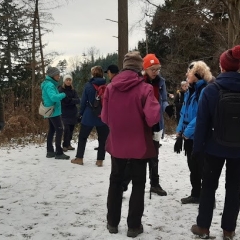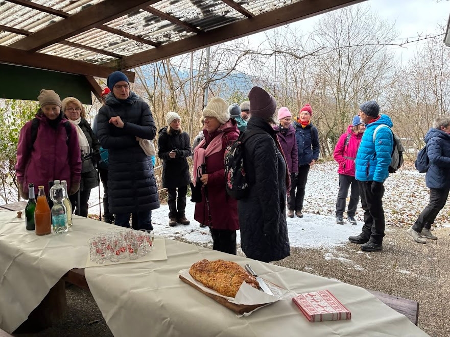 Gut gelaunt, trotz etwas unsicherem Wetter machte sich die bunt gemischte Gruppe auf den Weg. Nach den Feiertagen und weniger Bewegung im Freien, war die Motivation entsprechend gegeben. Dabei gab es auch lustige Momente wie beim Versuch diesen "Stein" ins Rollen zu bringen. Zum Abschluss wurden die Teilnehmer*Innen noch mit einem kleine Gläschen auf die Wandersaison eingestimmt.