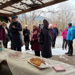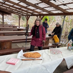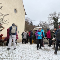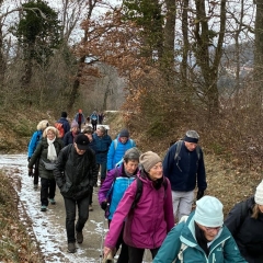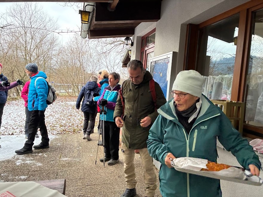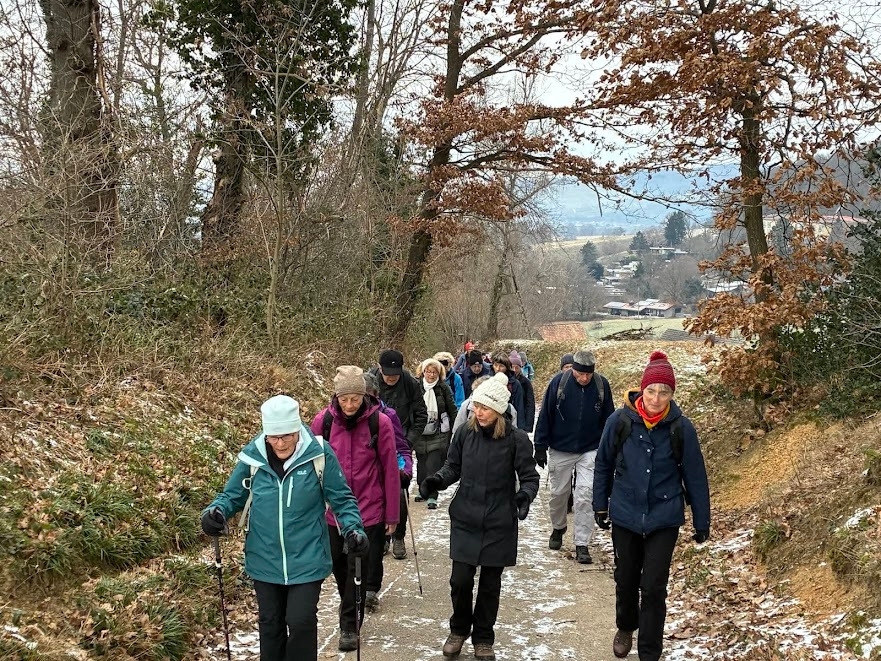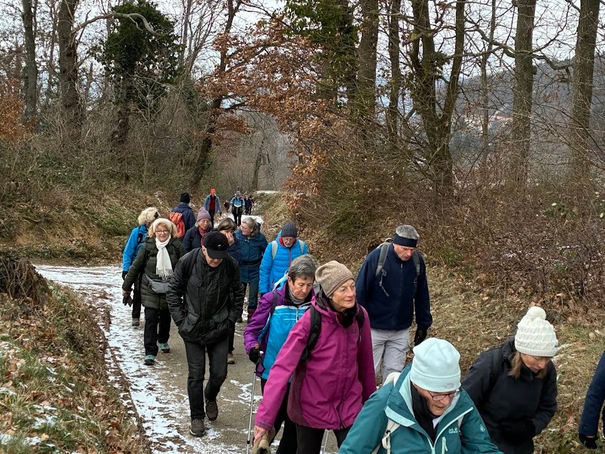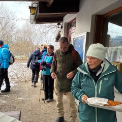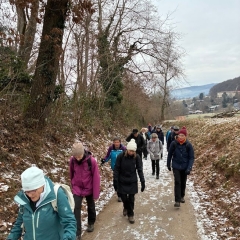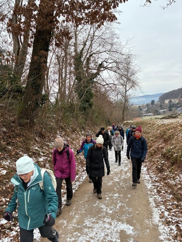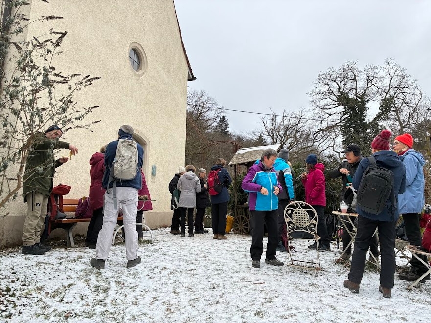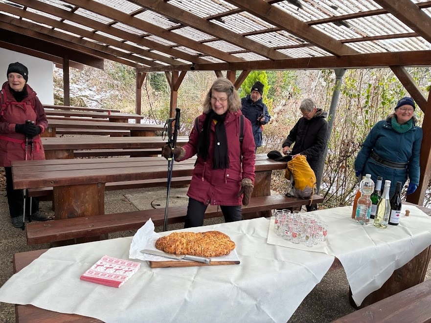 Alle Wanderer hatten sich warm eingepackt, um am Dreikönigstag in die Wandersaison 2026 zu starten. Die Wanderstrecke war gut ausgewählt, kein Eis, kein Schnee und trotz verhangenem Himmel gab es Ausblicke in die Ebene. Die Wanderung bot Gelegenheit für Unterhaltung untereinander. Die Stimmung war bestens, nicht nur beim Ausklang mit Überraschung durch Britta Riess und Gaby Läufer, die diese Auftaktwanderung geplant und geführt hatten.