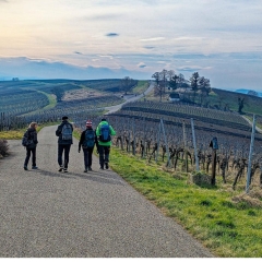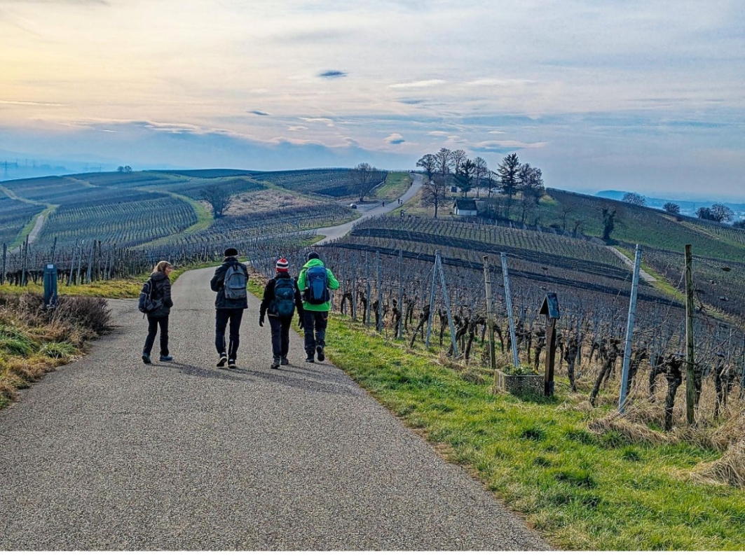 Mit der Bahn fuhren wir nach St. Georgen. Von dort aus machten sich 8 Wanderer (4 Frauen und 4 Männer ) auf den Weg zum Wiiwegli.Diesem Weg folgten wir über Ebringen und dem Batzenberg mit Mittagspause in einer Rebhütte bis nach Ehrenkirchen. Bei sehr schönem Wetter genossen wir die Aussicht auf Schwarzwald und Vogesen.