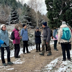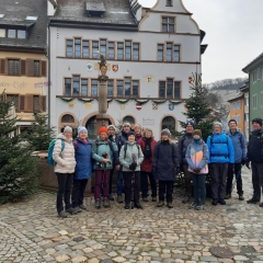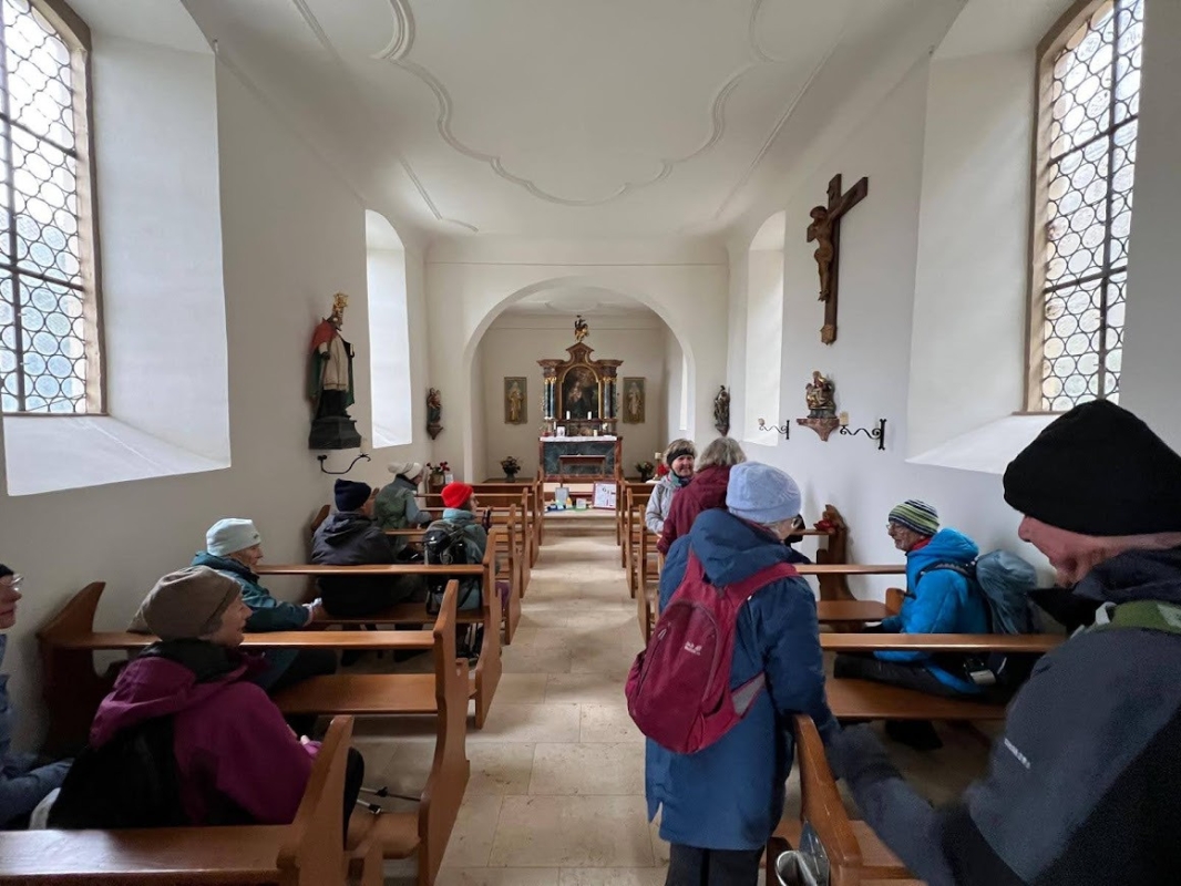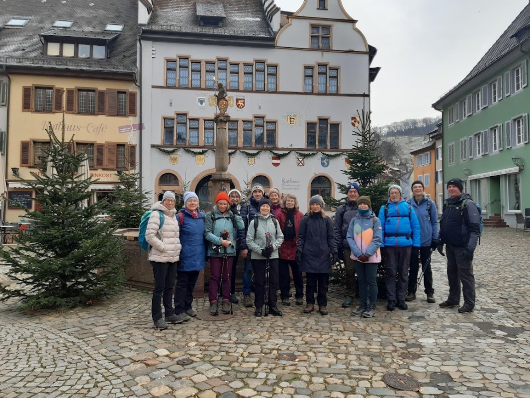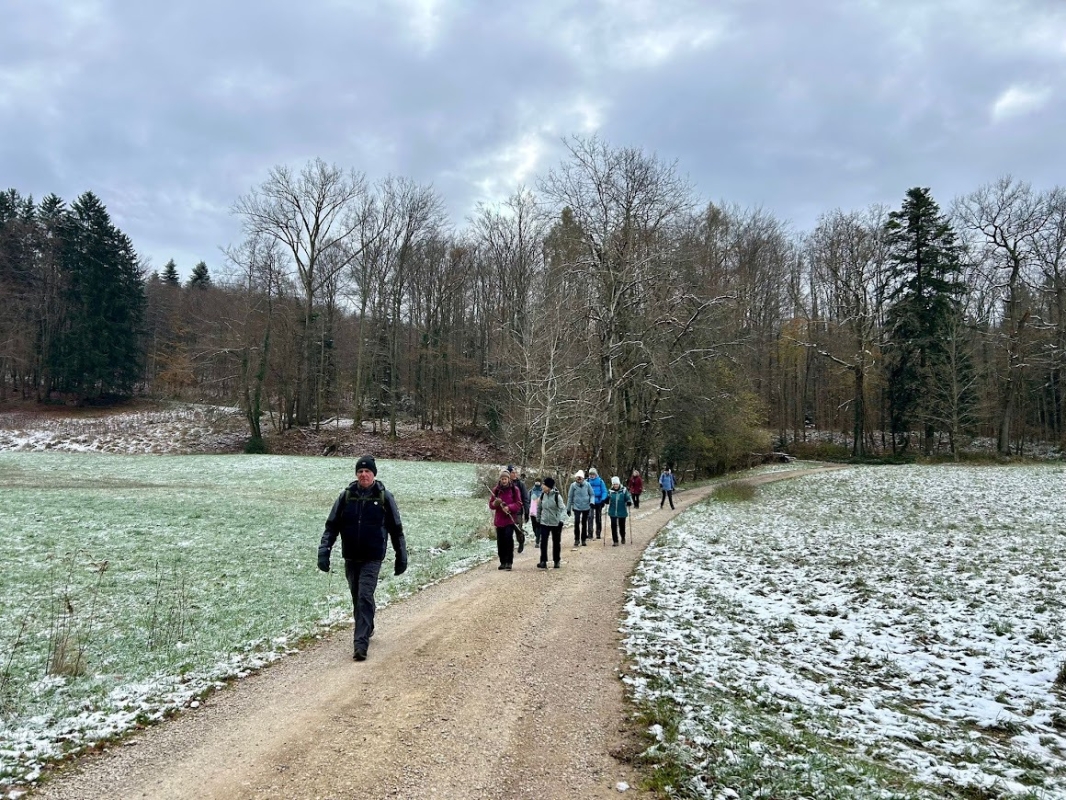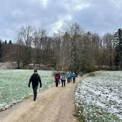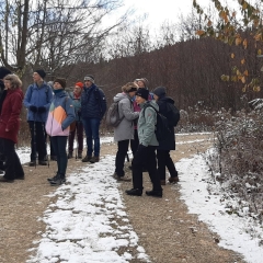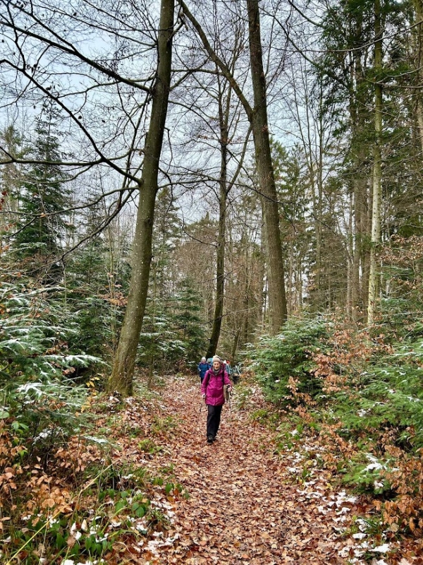 Nicole Appel und Matthias Appel und Gaby Läufer begleiteten, bzw. führten die Wandergruppe an dem frostigen Sonntag aus dem Städtle hinauf zur Saulache, zum Bildstöckchen, den Alemannengräbern und am Ende der Tour zur St.Gothardkapelle.