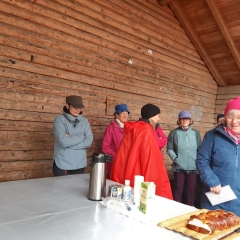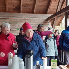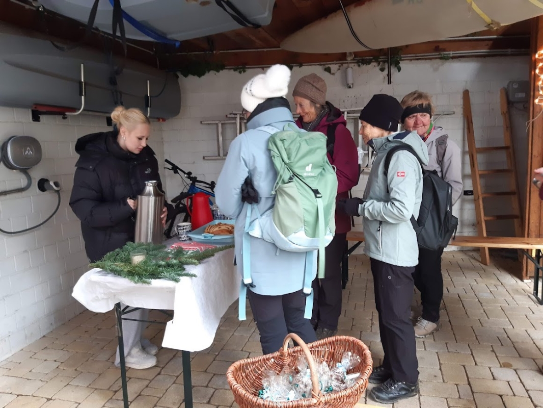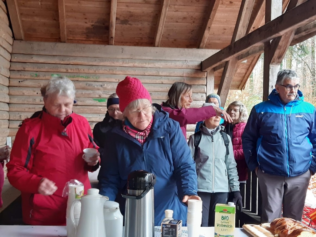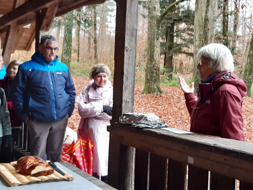 An diesen Punkten erfuhren die Teilnehmer/Innne einige, interessante Hintergründe zu diesen Kleinoden am Wegesrand. Natürlich darf eine letzte Sonntagswanderung nicht ohne Überraschung enden. Selbstgebackenen Hefezopf und ein Gläschen Glühwein - auch alkoholfreie Variante war im Angebot - rundeten diesen gelungenen Wandertag ab.