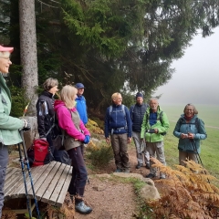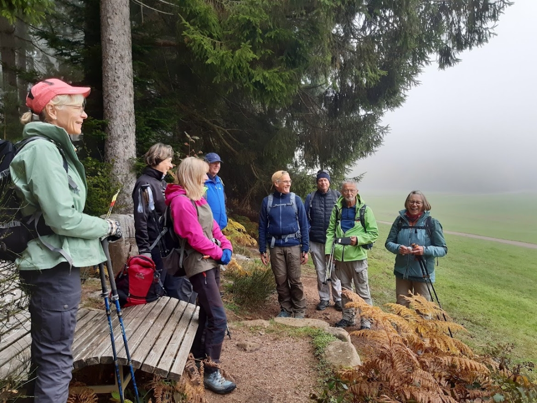 Schon zu Beginn war das Wetter an diesem Tag vielversprechend und so ging es durch Nadel- und Mischwald ins Vogelbachtal, weiter zum Ebersbauernhof. Hier hielten wir unsere Mittagsrast ab. Unser nächstes Ziel war dann der Bühlerbächle Brunnen, wo ein Schäpschen auf uns wartete. Oberhalb vom Steinades Loch genossen wir dann die herrliche Aussicht am Pavillon.